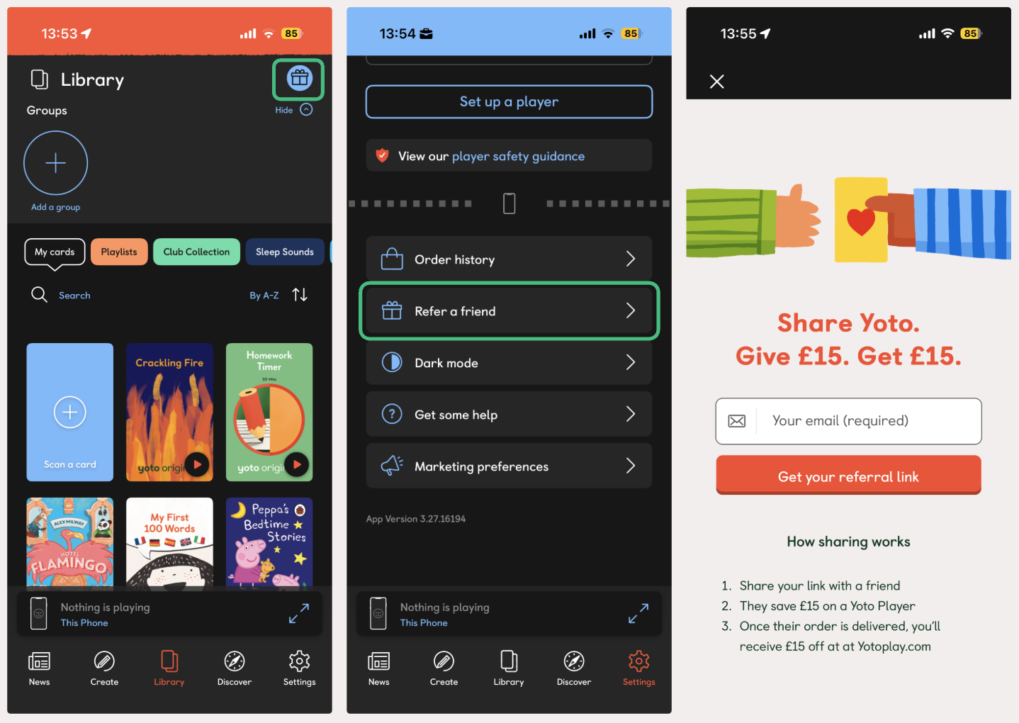 Sharing Yoto with friends is a simple way to spread the joy of audio, and earn a little reward for yourself along the way!