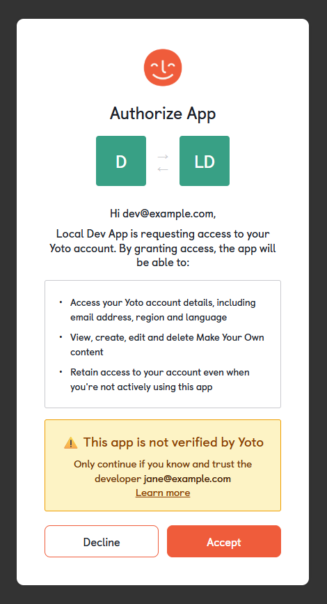 Think of it like any other website or app you come across on the internet, it's worth taking a moment to check who made it, what it does, and whether you're comfortable with what it's asking for before giving it access to your Yoto account.